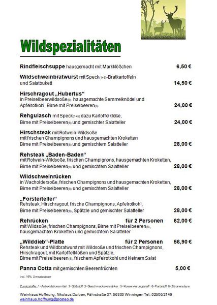 Unser ganzjährig geöffnetes Restaurant bietet Ihnen saisonaleSpezialitäten, bei denen Sie die kulinarische Vielfalt unserer Region kennen lernen können. Fischwochen im Winter, Spargel im Frühling, leichte Speisen, Pfifferlinge und Grillteller im Sommer, regionale Wildspezialitäten im Herbst und Winter. Zudem lassen wir uns auch immer wieder von der mosellängischen Winzerküche inspirieren.