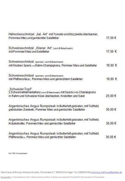 Änderungen vorbehalten. Es gilt nur die ausliegende Speisekarte vor Ort.